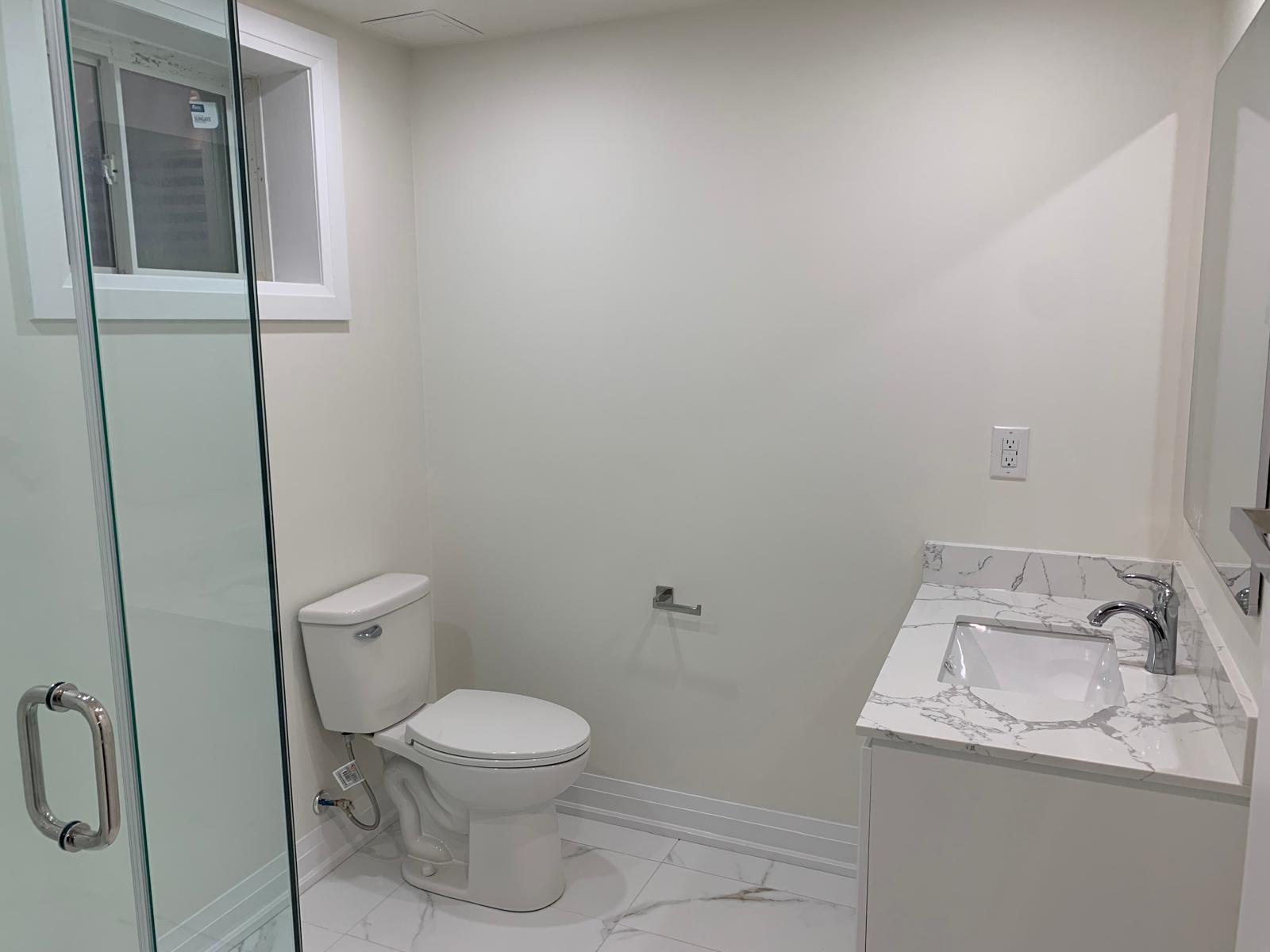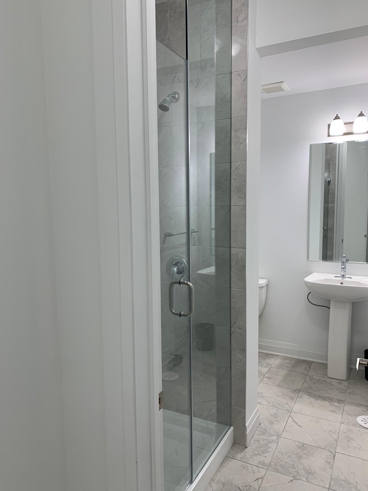 Spacious brand new washrooms with glassed showers.